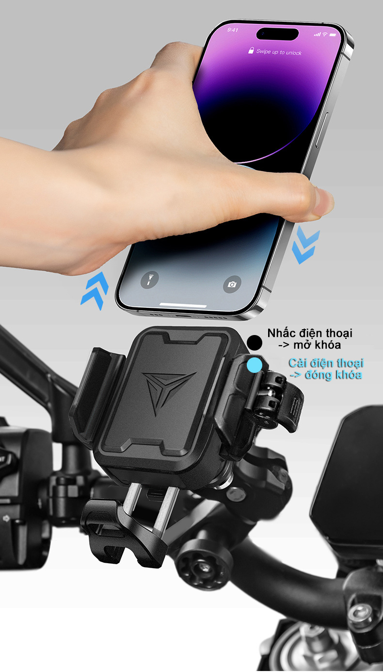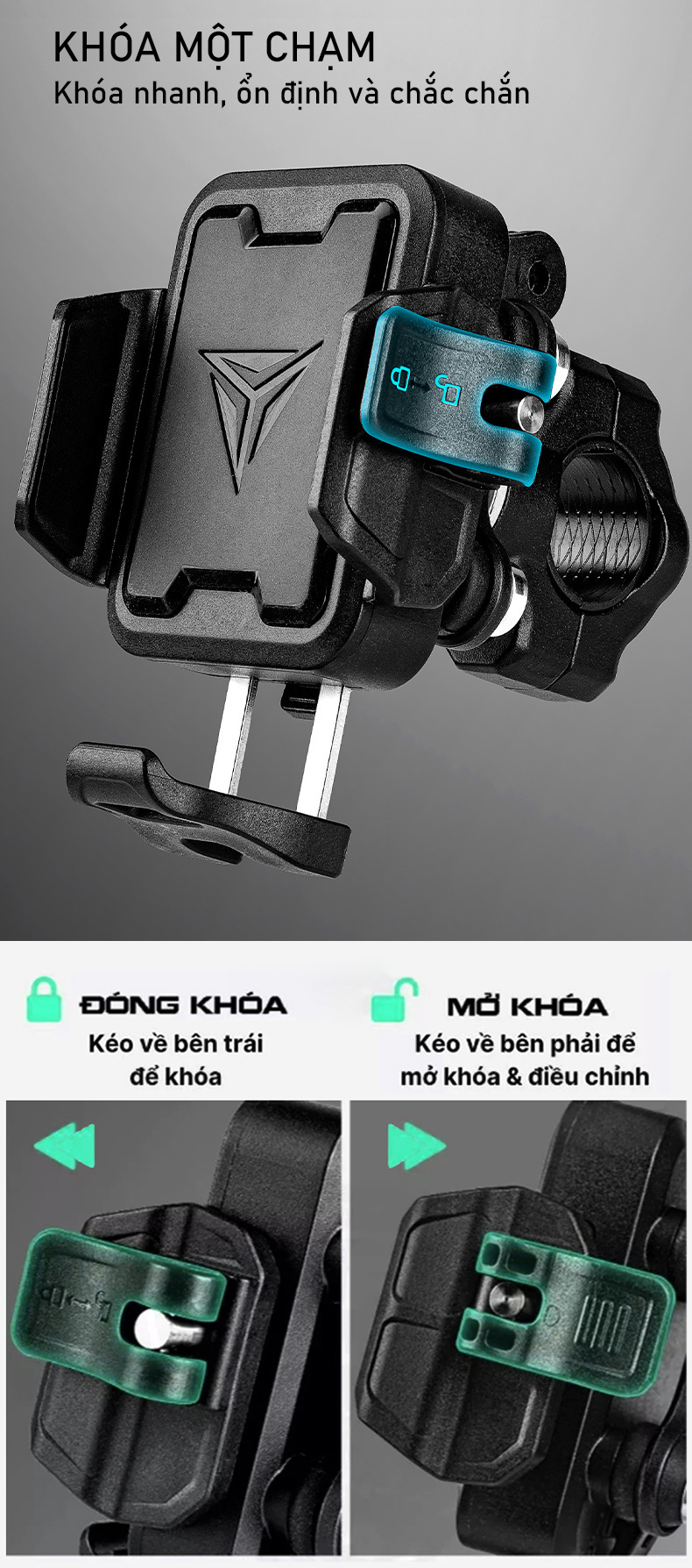 Giá Đỡ Điện Thoại Motowolf MH1 còn gây ấn tượng bởi thiết kế cùm khóa nhanh hỗ trợ điều chỉnh kích thước 1 tay dễ dàng.