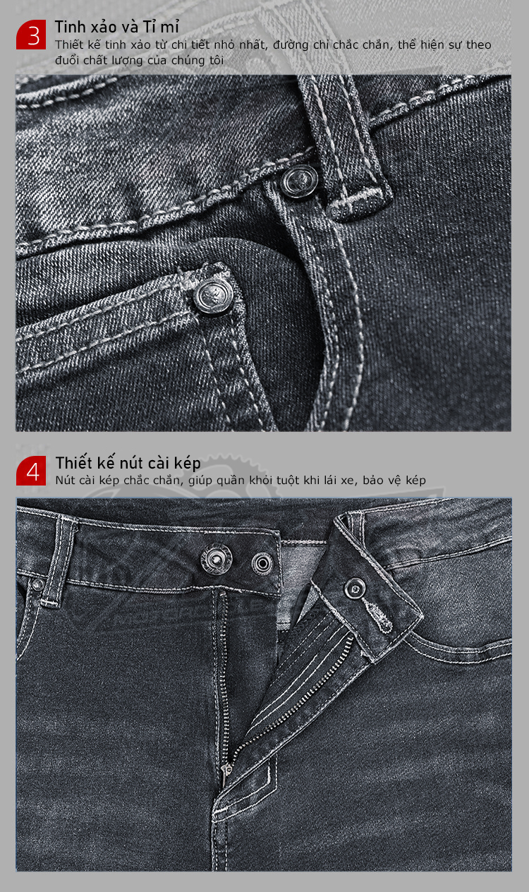 ✅ Nút cài kép giúp quần khỏi tuột khi lái xe.
