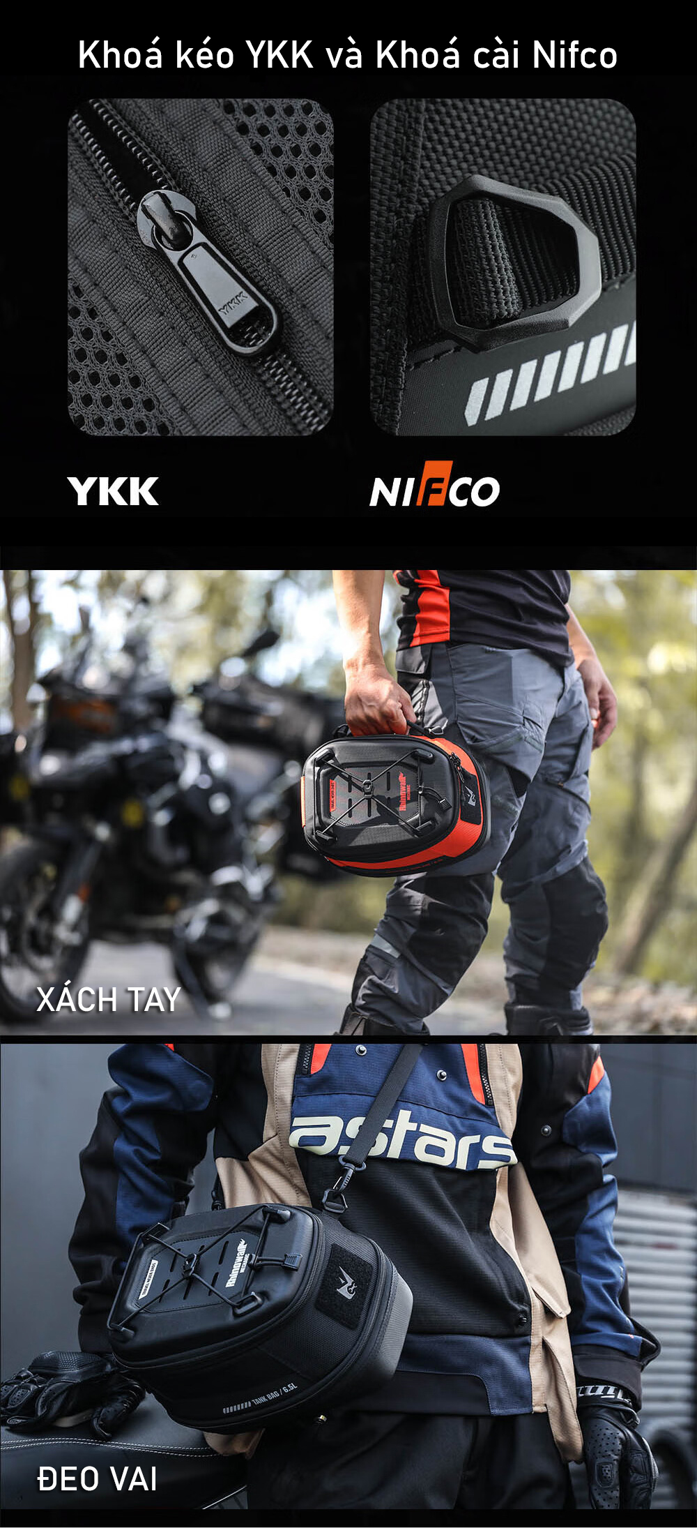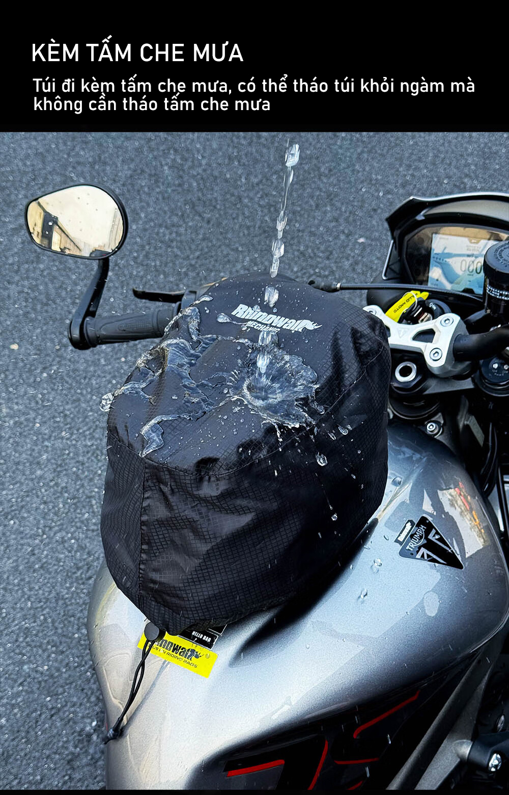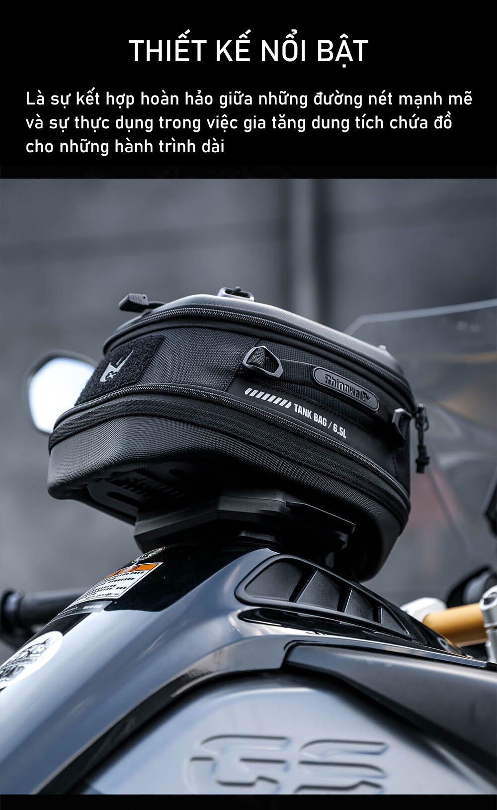 - Thẩmmỹ tối ưu: Túi được thiết kế với các đường nét góc cạnh tinh tế, ôm trọn theo đường cong bình xăng, tạo cảm giác như một phần tích hợp của chiếc xe mà không hề gây mất đi tính thẩm mỹ.