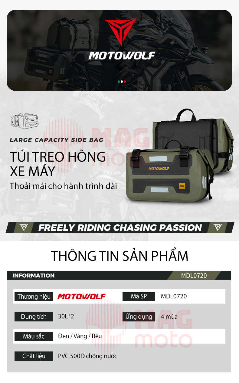 Túi treo hông xe máy Motowolf MDL 0720 dung tích 30 Lít – được thương hiệu Motowolf cho ra mắt đầu năm 2024.