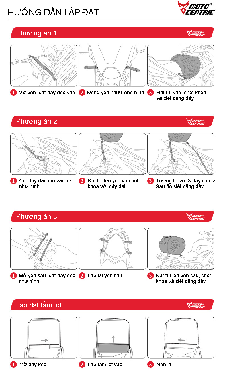 - Túi dành cho các dòng xe ga, Maxi scooter, ADV 150, ADV 160, ADV 350, Xmax300.... gắn baga giữa hoặc gắn yên sau xe