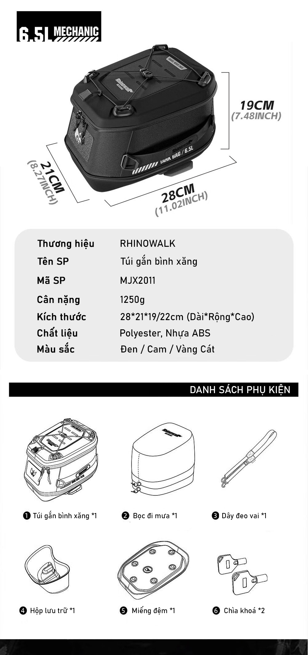 - Thiết kế chống trộm: Túi được tích hợp khoá chống trộm gắn chắc chắn vào bình xăng, đi kèm 2 chìa khóa dự phòng. Giúp an tâm tuyệt đối khi bạn dừng xe ở nơi công cộng.