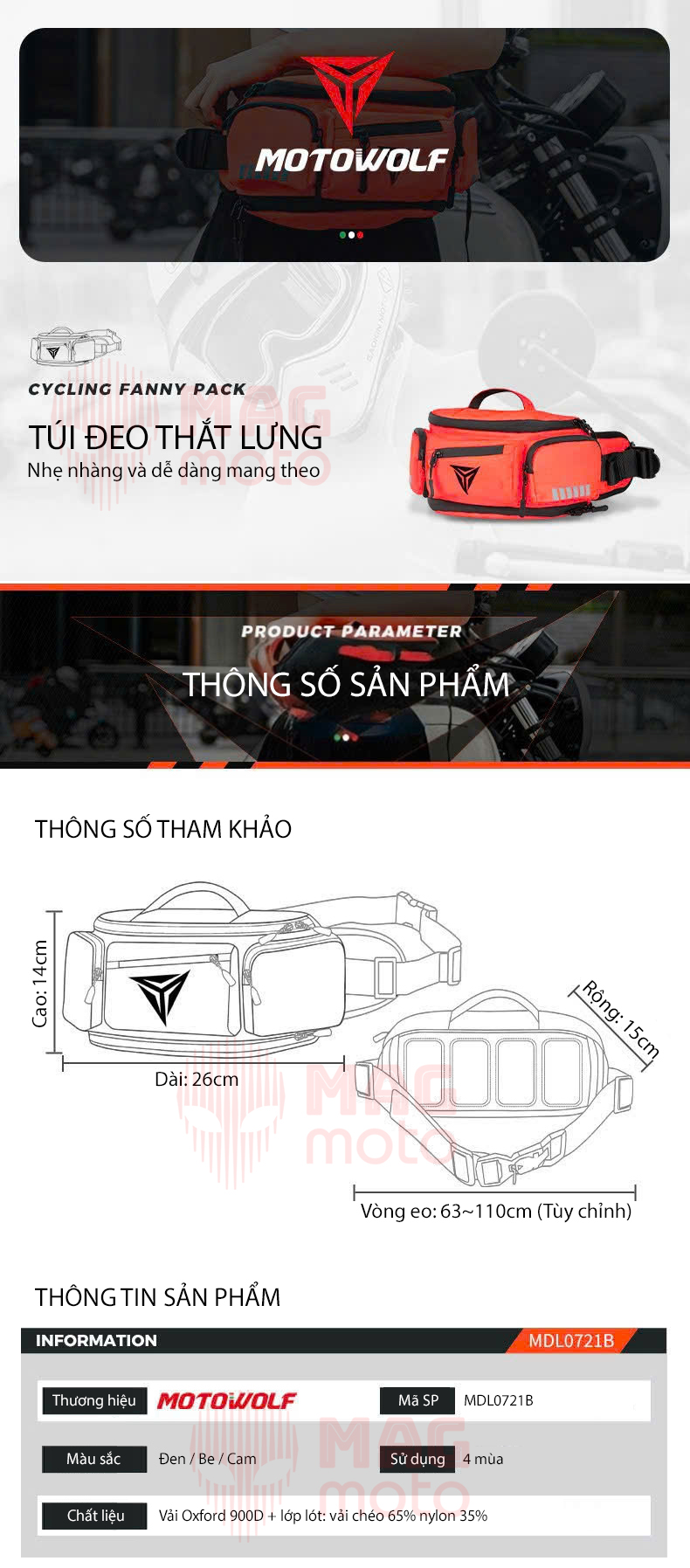 - Tên sản phẩm: Túi đeo hông Motowolf MDL-0721B ( Phiên bản nâng cấp có bọc đi mưa)
