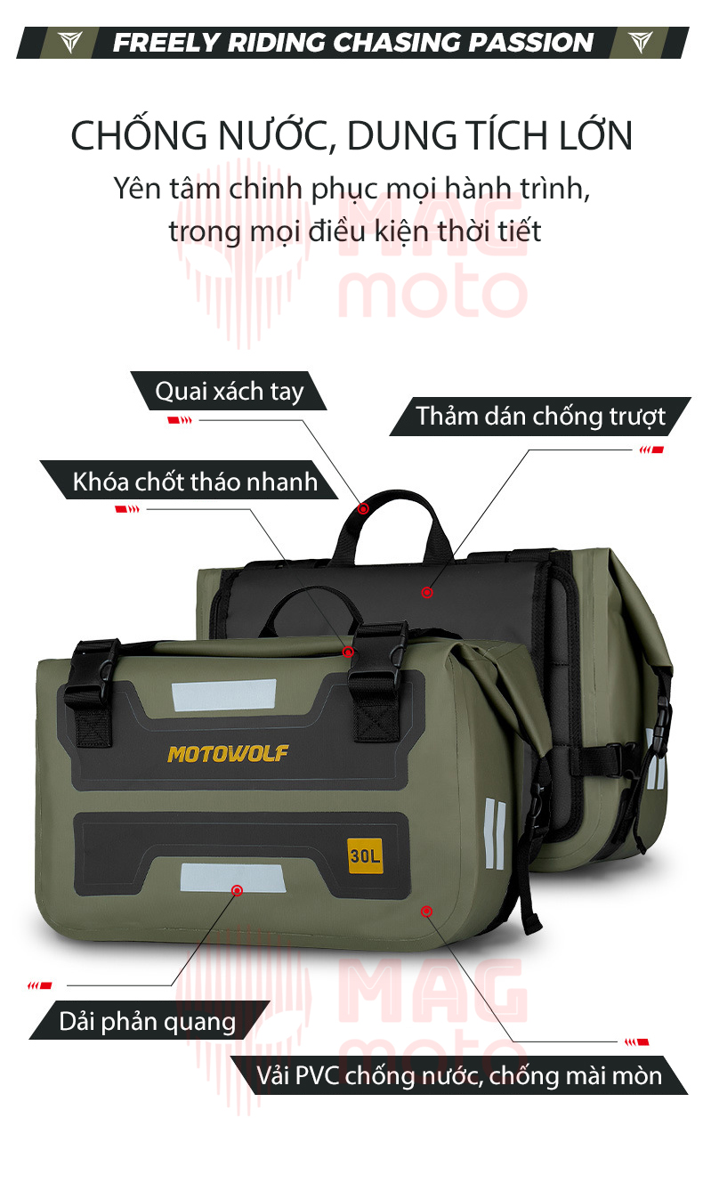 Ngoài việc, có kiểu dáng tương tự các sản phẩm túi chống nước của Motowolf đang có mặt trên thị trường hiện nay.