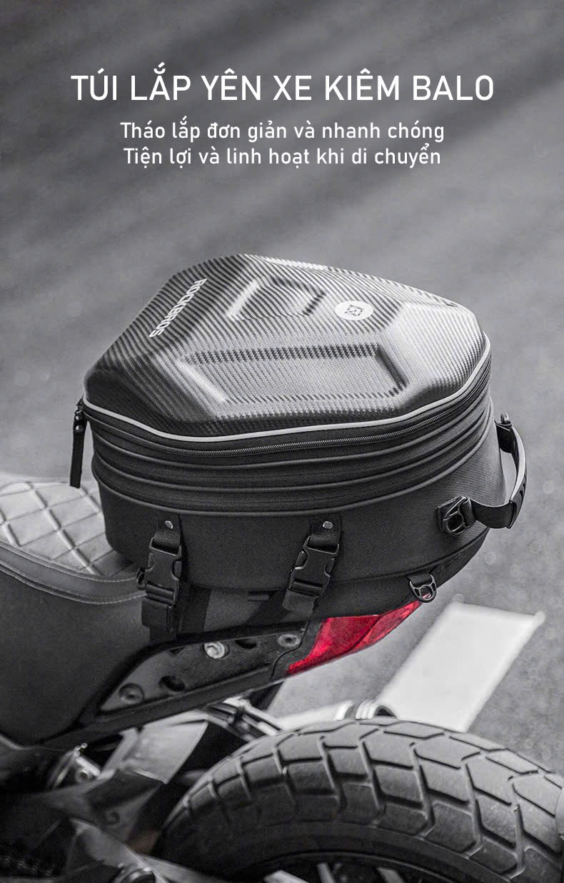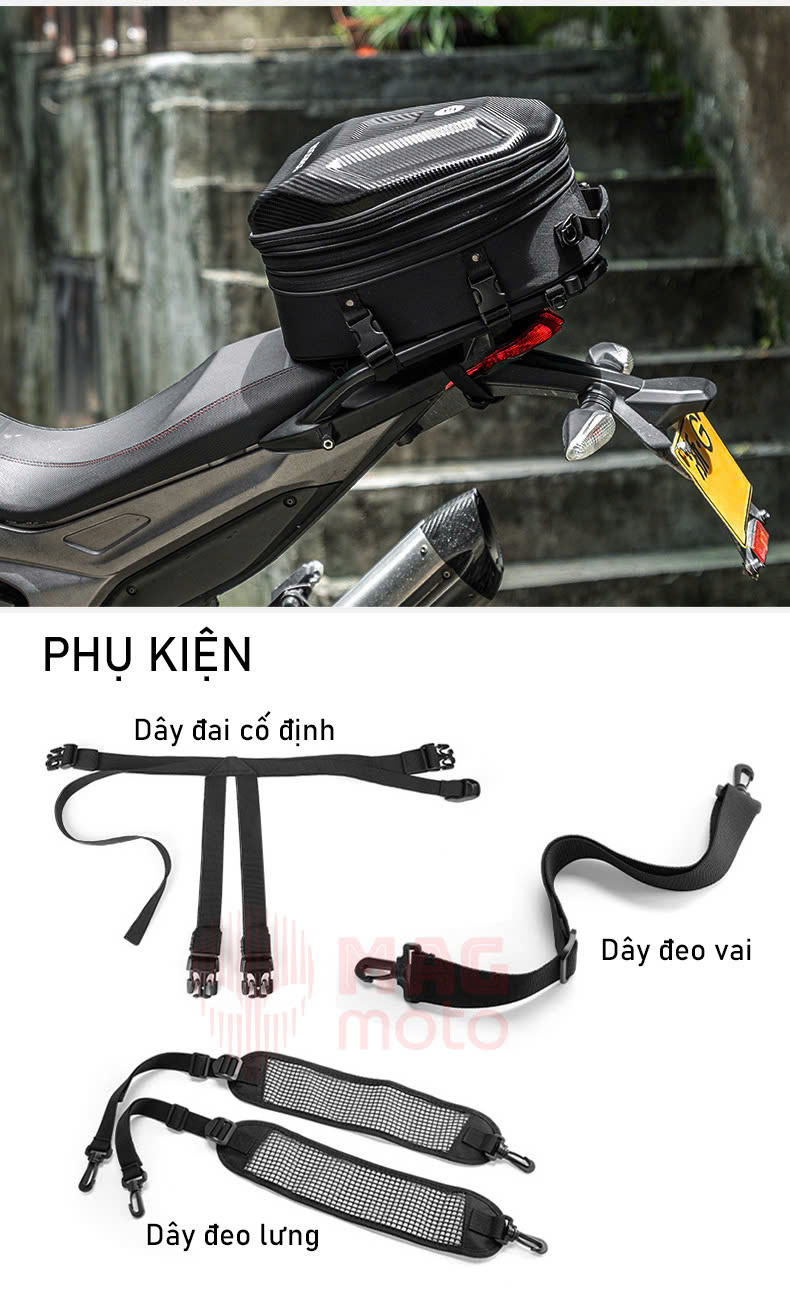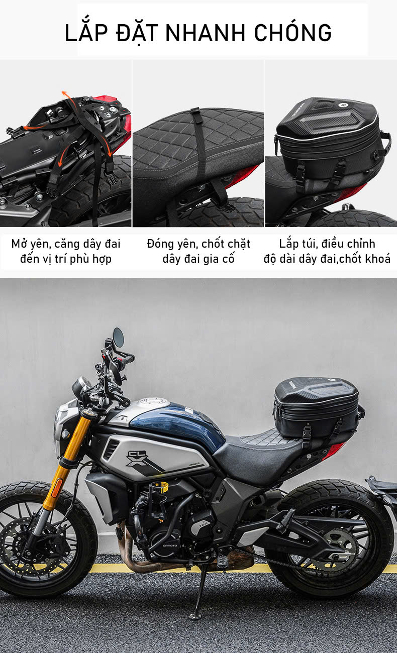 - Sản phẩm hoàn hảo lắp trên yên sau cho các dòng xe Sport, naked bike, xe phổ thông
