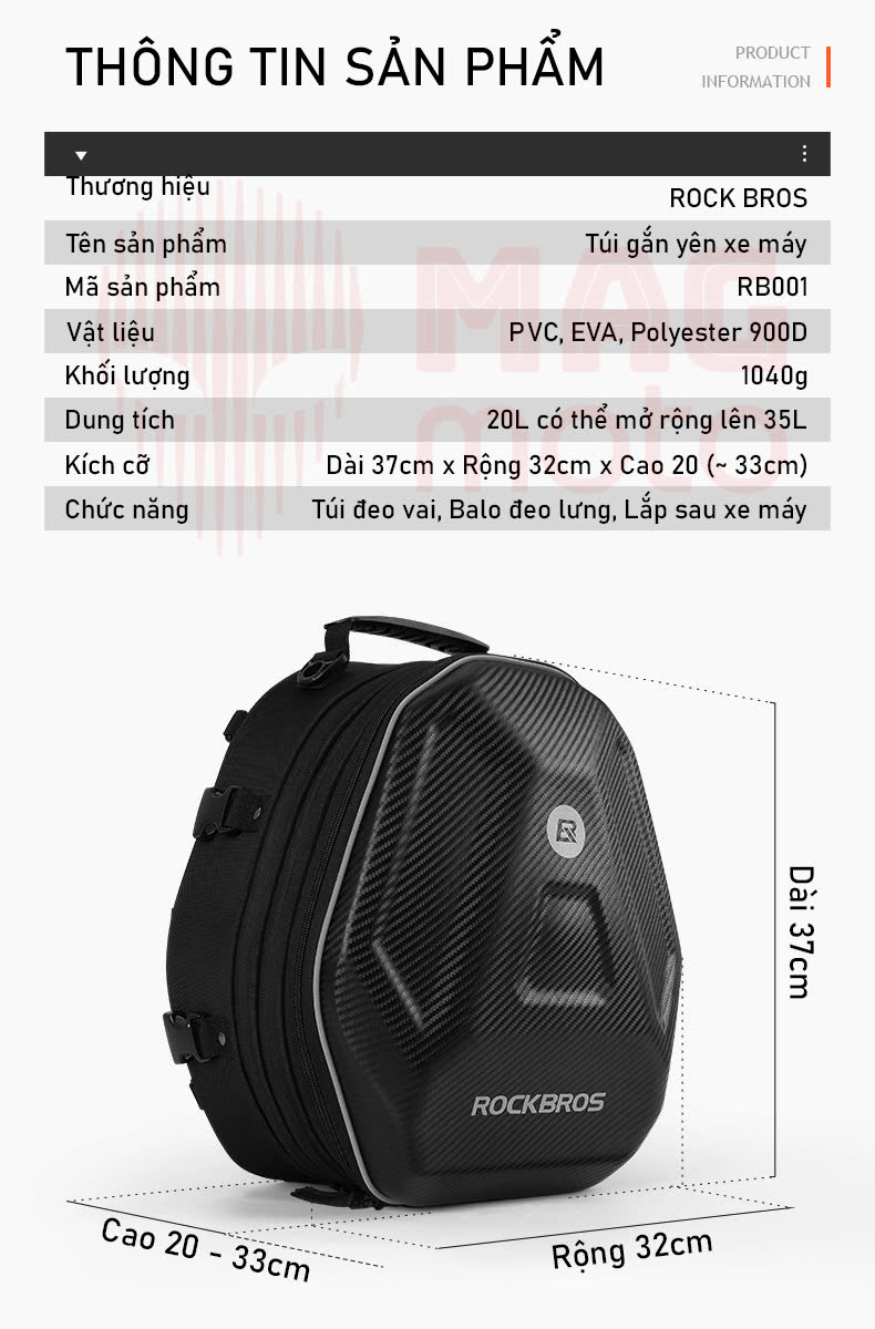 - Tên sản phẩm: Túi yên xe máy Rockbros RB001