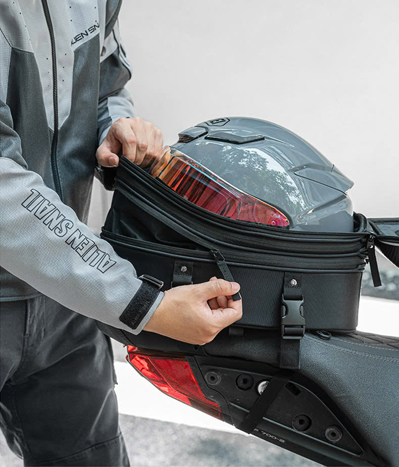 - Dung tích mở rộng cực lớn, có thể để vừa mũ bảo hiểm Fullface cỡ lớn và các vật dụng khác.